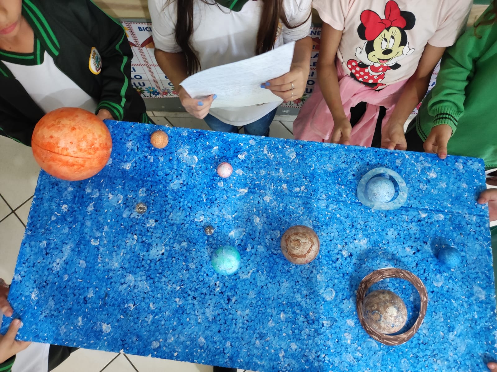 Por último, os alunos confeccionaram uma maquete sobre o Sistema Solar e explicaram a maquete para a turma.